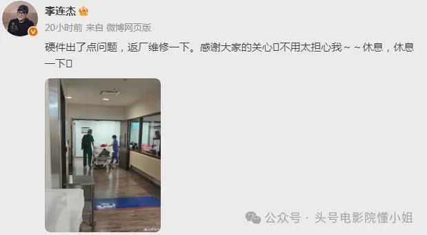 这是李连杰去年8月躺在病床上发给粉丝的话,当时,照片中的他刚完成手术,面容憔悴,配文却依然幽默:“硬件出了点问题,返厂维修一下。”